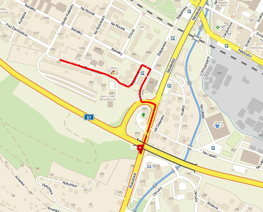 Za čerpací stanicí Shell zatočte vlevo a hned vpravo. Po pravé straně bude Penny market. Na další křižovatce se dáte vlevo a znovu vlevo. Tato silnice vás kolem Úřadu práce zavede až k domu rodičů nevěsty.